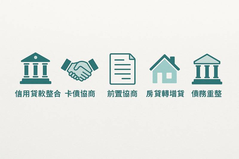 - 對應方案:有收入→信用貸款;繳不出→協商/前置協商;完全無力→更生/清算。